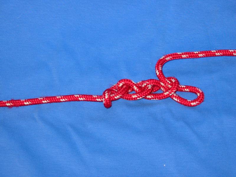 Step 1 - Start the initial overhand knot. Step 2 - Continue the overhand knot; pull the first loop through. Step 3 - Start the first chain-stitch knot. Step 4 - Continue the chain-stitch knots.