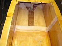 Because the forward side of the bulkhead/side-panel joint would have to be made blind (and thus couldn't be filleted with thickened epoxy), a triangular cross-section strip of wood was attached to each side of the bulkhead to increase the gluing area. A small brad was used to hold the blocking-strip in place while glue was applied to the bulkhead and the bulkhead placed in position. Excess micro-fiber (WEST ® 403) thickened epoxy was applied to the sides of the bulkhead and the blocking to help fill any gaps that might occur on the inside of the joint. The fit between the bulkhead and the existing structure was tight enough that no clamping was required to hold the bulkhead in place while the epoxy cured.