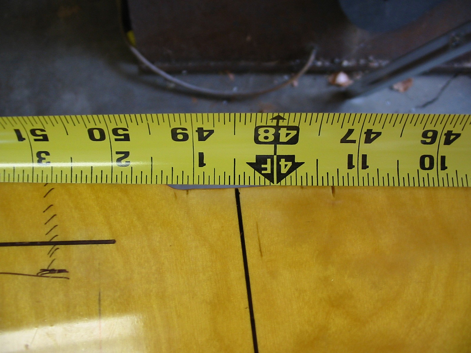 The first step was to determine a line perpendicular to the hull centerline. I did this by measuring the same distance from the steering post to either side of the hull near (but forward of) the new bulkhead position: